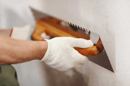 При работе с штукатуркой короед обращайте внимание на толщину слоя – если материал налипает на терку, то раствора слишком много. Если же на стене после нанесения раствора вообще не появляются характерные бороздки, то это означает слишком малое количество нанесенного материала.