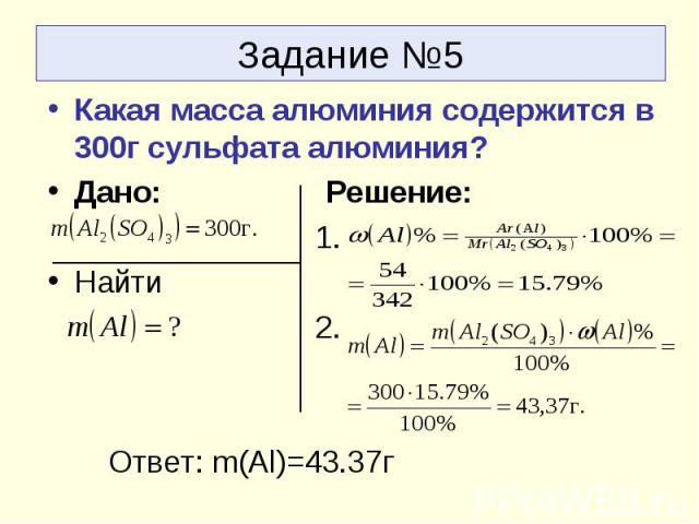 Ans.3 Гидроксид алюминия имеет молекулярную массу 78 г/моль.