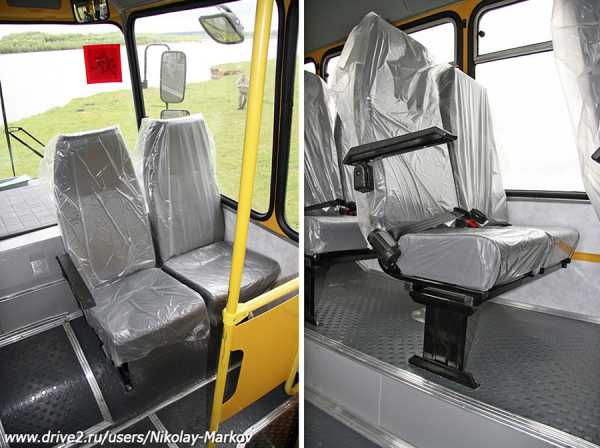 Хоть «пазик» и школьный, но кресла в его салоне расставлены с весьма большим шагом: порой в городских «маршрутках» сидушки стоят плотнее друг к другу! В салоне же школьного ПАЗа при необходимости рассядутся и взрослые. Видимо, шаг сидений выбран с прицелом на то, что среди старшеклассников сейчас регулярно попадаются акселераты ростом за метр восемьдесят, а ездить-то им приходится в одном автобусе с первоклашками.