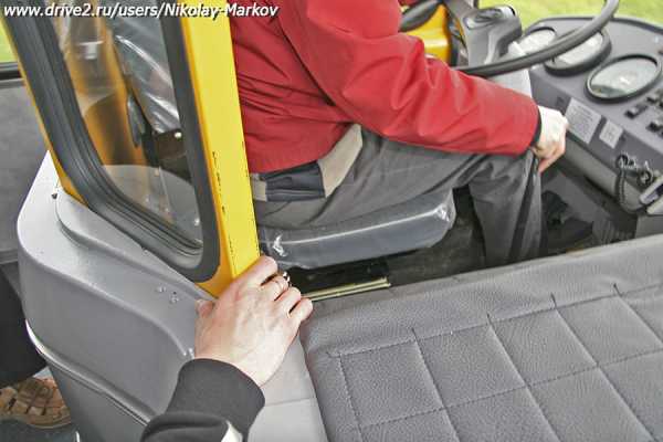 Как я уже говорил, коробка на «пазике» хоть и без синхронизаторов, но при использовании перегазовки и двойного выжима сцепления передачи втыкаются легко. Вот только сам рычаг имеет слишком большой ход: хочешь включить первую или вторую – изволь сперва вжать правое колено в кожух рулевой колонки, чтобы освободить место рычагу, причем при включении второй передачи рычаг приходится еще и вдавливать в подушку сиденья. В свою очередь, когда включаешь заднюю (по классической схеме –вправо и назад), рычаг чуть не упирается в капот.