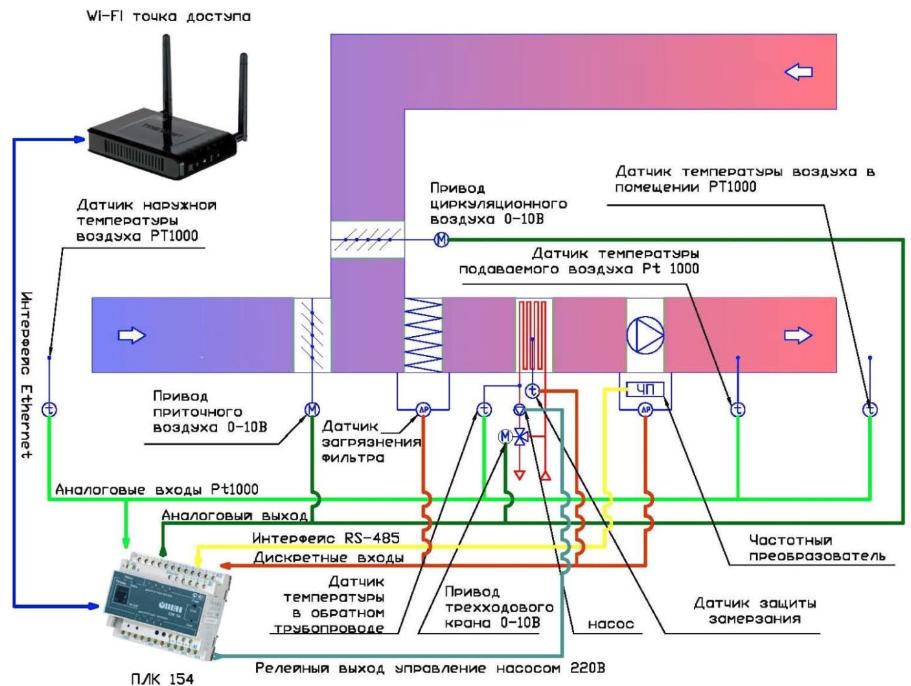 Π’Π°ΠΊΠΈΠΌ ΠΎΠ±ΡΠ°Π·ΠΎΠΌ, Π°Π²ΡΠΎΠΌΠ°ΡΠΈΠ·Π°ΡΠΈΡ ΡΠΈΡΡΠ΅ΠΌΡ Π²Π΅Π½ΡΠΈΠ»ΡΡΠΈΠΈ Π·Π°ΠΏΡΡΠΊΠ°Π΅Ρ Π²Π΅Π½ΡΠΈΠ»ΡΡΠΈΡ Π² ΡΠ°Π±ΠΎΡΡ, ΠΎΡΡΠ°Π½Π°Π²Π»ΠΈΠ²Π°Π΅Ρ Π΅Ρ, ΠΎΠ±ΡΠ°Π±Π°ΡΡΠ²Π°Π΅Ρ ΠΏΠΎΠΊΠ°Π·Π°Π½ΠΈΡ Π΄Π°ΡΡΠΈΠΊΠΎΠ² ΠΈ ΡΡΡΠ°Π½Π°Π²Π»ΠΈΠ²Π°Π΅Ρ Π½ΡΠΆΠ½ΡΠΉ ΡΠ΅ΠΆΠΈΠΌ Π² Π·Π°Π²ΠΈΡΠΈΠΌΠΎΡΡΠΈ ΠΎΡ ΡΠ΅ΠΌΠΏΠ΅ΡΠ°ΡΡΡΡ, Π²Π»Π°ΠΆΠ½ΠΎΡΡΠΈ ΠΈ ΠΏΡΠΎΡΠΈΡ