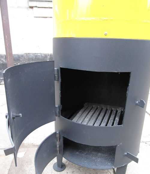 В топку загружают топливо, например, уголь или дрова. После этого прогретый воздух начинает подниматься вместе с продуктом горения через сквозные круглые отверстия, которые представляют собой патрубок, размещенный в баке. Примерно через 20 или 30 минут емкость нагревается. Для того чтобы удалялись и горячий воздух и продукты горения, необходимо обустроить систему их принудительного удаления в дымоход.