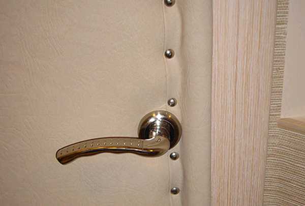 По периметру дверного полотна требуется укрепить валики, изготовленные из такого же обивочного материала. Кода обивка окончена, по поверхности двери выполняется узор с помощью декоративных гвоздей либо иных подходящих элементов, после чего дверь необходимо повесить на петли.