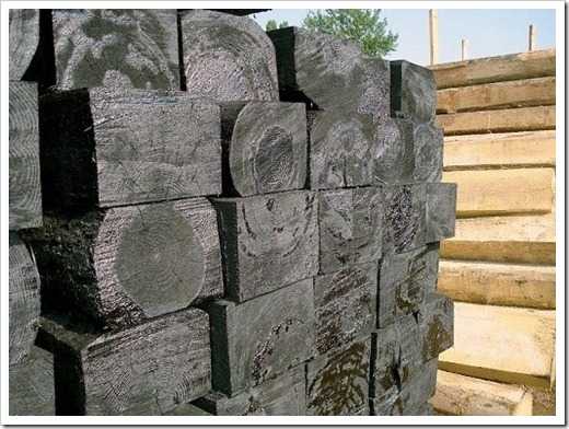 2. Каменноугольный дёготь – его смешивают с креозотом 1:1. Данная процедура предотвращает растрескивание дерева.
