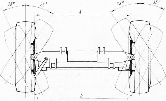 Если разность (Б — А) отличается от указанной, то отрегулировать схождение колес. Для этого ослабить стяжные болты наконечников поперечной рулевой тяги и, вращая трубу тяги трубным ключом, установить необходимую разность размеров Б и А.