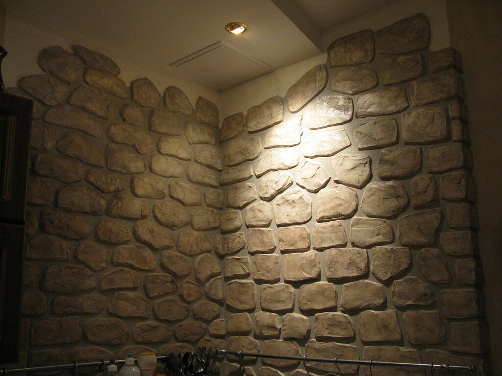Но большой вес натурального камня не позволяет применять его при оформлении стен. Искусственный камень прекрасно справляется с подобной задачей, причем по внешним характеристикам он ни в чем не уступает натуральному аналогу.