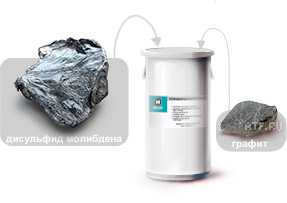 Добывается компонент в виде руды с соединением серы. В дальнейшем его очищают, в результате чего он преобразуется в кристаллы темного цвета, которые, взаимодействуя с металлом, оставляют след серого оттенка с зеленым отливом. Смазывающие материалы на основе дисульфида молибдена славятся своей адгезией по отношению к металлическим поверхностям механизмов. Говоря простым языком, поверхность, подверженная трению и прямому механическому воздействию, защищена микроскопическим слоем смазки, которая, в свою очередь, предохрняет деталь от образования физических повреждений, а также способствует снижению температурных показателей в районе трения.
