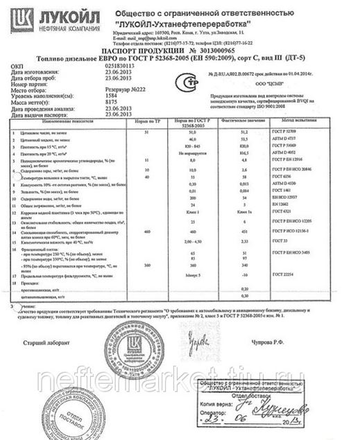 Установленные экостандарты для данного вида топлива должны соответствовать следующим параметрам: