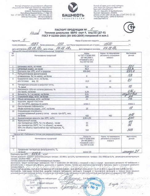 ГОСТ Р 55475-2013 на зимнее дизельное топливо