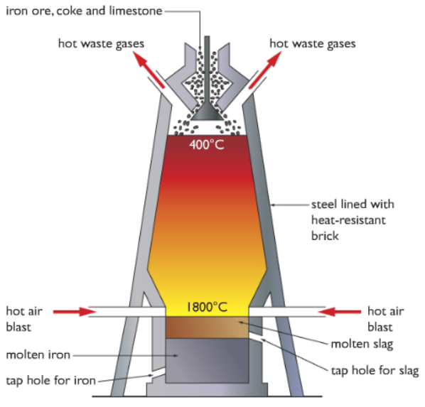 - Восстановление железа из окислов руды, науглероживание его и удаление в виде жидкого чугуна определенного химического состава.