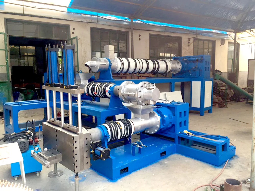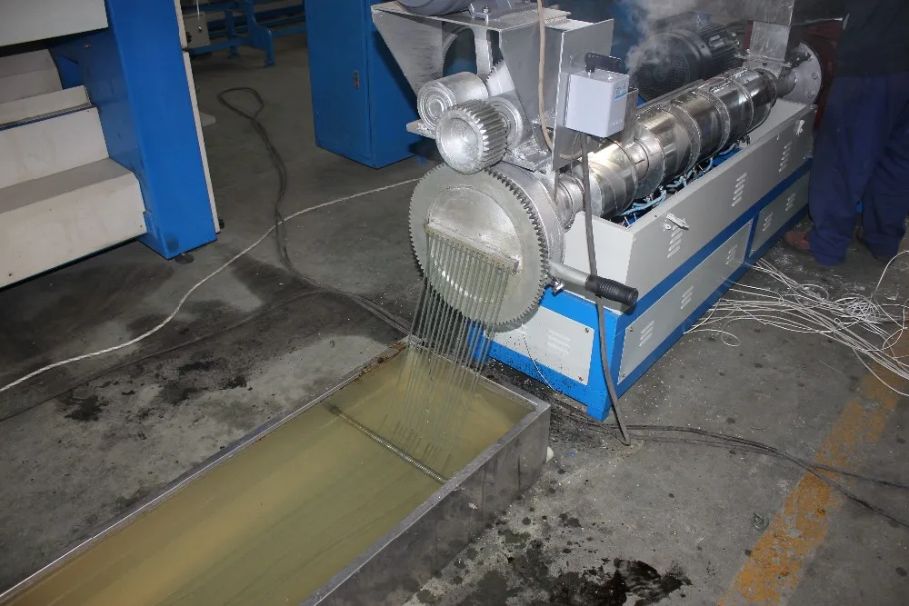 Экструдер для производства пластиковых гранул из отходов пластиковых бутылок.