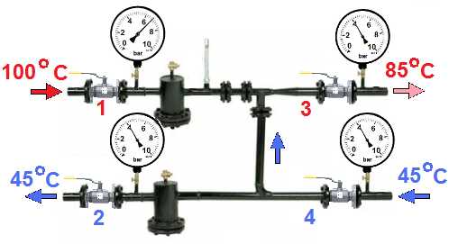 - Нужно соблюдать перепад давления между подачей и обраткой в районе 0,8-2 бар.