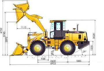 • высота разгрузки (при условии, что ковш опрокинут) — 2,89 м;