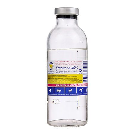 глюкозы р-р 40% вводят в/в (очень медленно), взрослым — по 20–40–50 мл на введение. При необходимости вводят капельно, со скоростью до 30 капель/мин (1,5 мл/кг/ч). Доза для взрослых при в/в капельном введении — до 300 мл/сут. Максимальная суточная доза для взрослых — 15 мл/кг, но не более 1000 мл/сут.