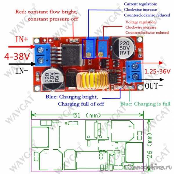 Также рекомендую на разъеме USB между 2 и 3 контактом поставить перемычку иначе при зарядке мобильного режим зарядки будет медленный и соответственно повысится время зарядки телефона.Выходное напряжение регулируется от 1,25В-до 24В и ток от 0 до 5-6А