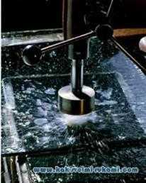 Желательно использовать сверлильный станок, ведь дрель сложно установить строго вертикально, из-за чего стекло может лопнуть при нажиме. Размещают стекло на мягкой подкладке — например, на резине или ковролине. Сверлят в водяной ванне. Для этого вокруг зоны сверления крепят пластиковое или резиновое кольцо, затем наливают в него воду и аккуратно сверлят. Сильно нажимать на стекло нельзя. Сначала сверлят до половины с одной стороны, затем стекло переворачивают, совмещают сверло и точку сверления и досверливают с обратной стороны.