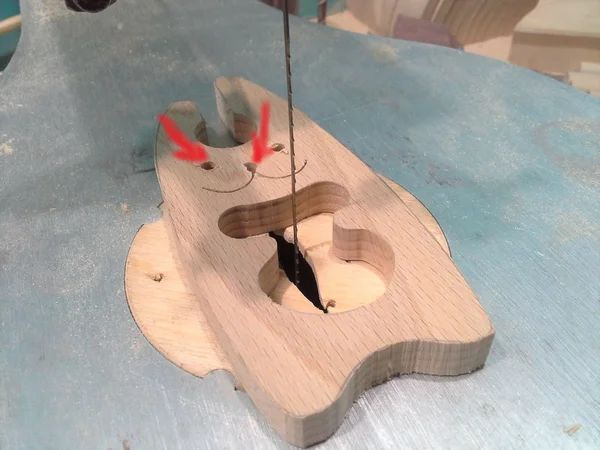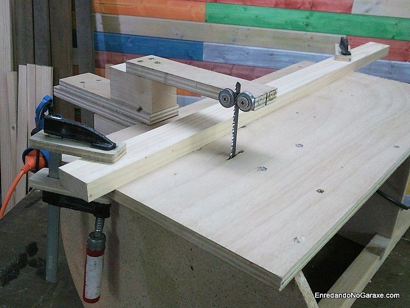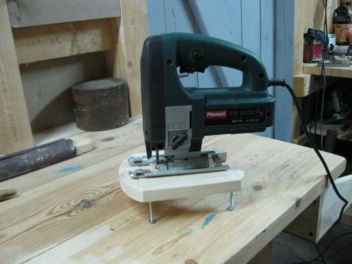 Следующим элементом конструкции, будет установлена подошва, по совместительству выполняющая роль опоры пильного полотна. Изготовить подобную деталь можно из обычной фанеры, толщиной в 5 мм.
