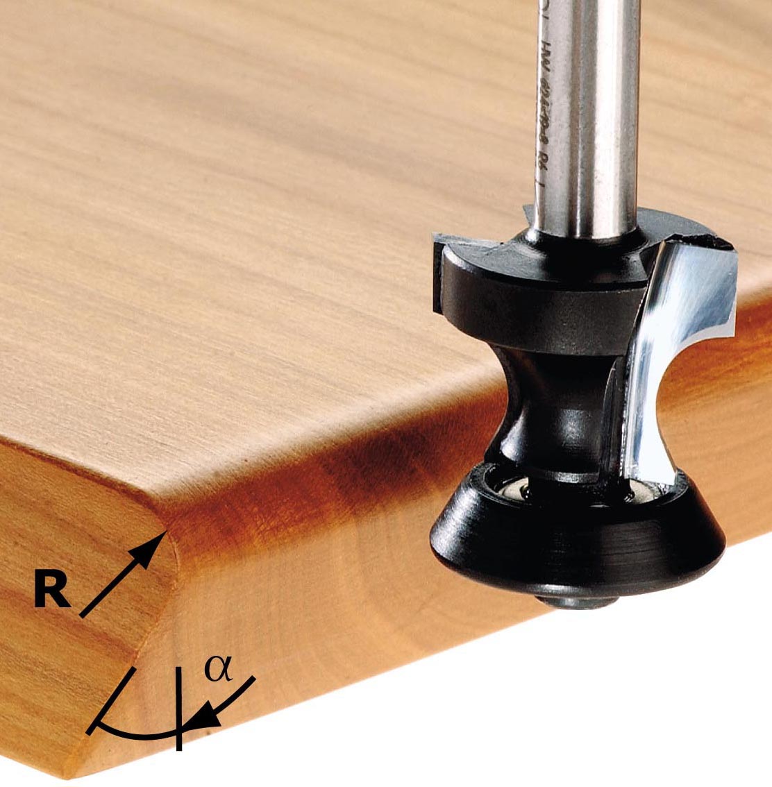 - У обгонной два подшипника. Изготавливает не прямолинейные фигуры на кромке. Две фрезы на одном хвостовике, за один проход делают красивую кромку.