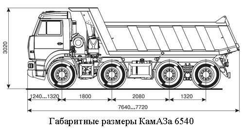 Четырехосный КамАЗ самосвал 6540 это большегрузная техника, характеристики которого приведены в таблице.
