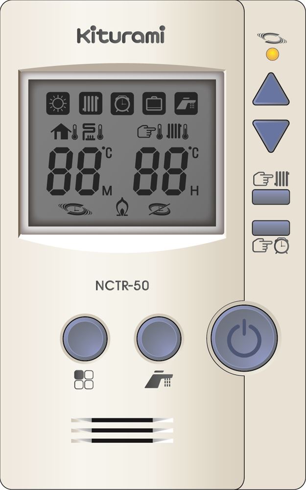 Удобства эксплуатации – все функции управления котлом задаются с пульта управления, который можно устанавливать в любом удобном месте. Встроенный в пульт термостат позволяет регулировать работу котла по комнатной температуре и теплоносителю. В котлах предусмотрена возможность поградусной регулировки температуры горячей воды в диапазоне от 41 °С до 75 °С.
