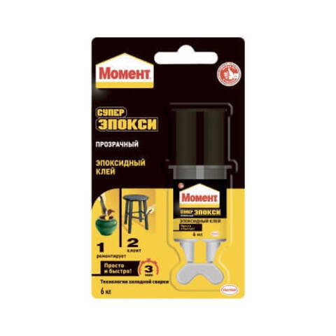 Клей двухкомпонентный эпоксидный Момент, Холодная сварка Супер ЭПОКСИ Прозрачный Хенкель (Henkel) 6 мл, 1 шт.