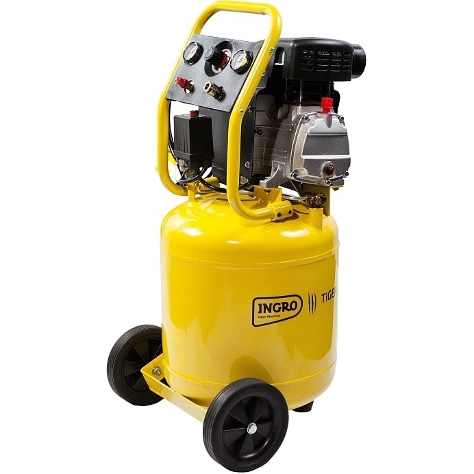 Вертикальные воздушные компрессоры используют один бак большой емкости с двигателем и насосом, установленными сверху. Меньшие модели обычно имеют ручку и колеса, которые можно перемещать, как ручную тележку. Большие модели предназначены для установки и остаются на месте.