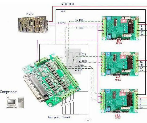 Одна часть предписывает приводу сделать шаг, вторая часть говорит, в каком направлении шаг должен быть сделан. На физическом уровне сигналы представляют собой прямоугольные импульсы амплитудой 5 В, которые, например, могут генерироваться компьютером на контактах LPT-порта(часто такие сигналы называюют ТТЛ-совместимыми сигналами).