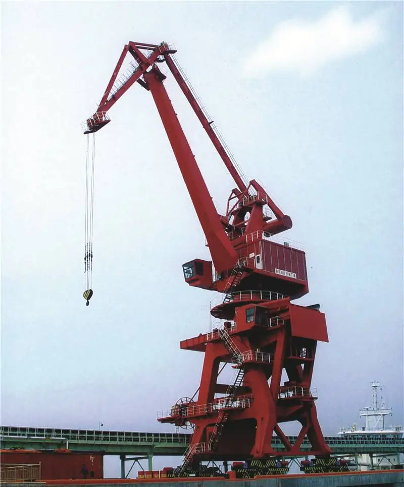 Портальные краны применяются для погрузочных и разгрузочных работ в портах и на открытых складских площадках, для строительных работ, а так же для монтажно-сборочных работ в судостроении и судоремонте (на плавучих доках и берегу). Подразделяются, по характеру работы, на перегрузочные (крюковые, грейферные, иногда магнитные) и монтажные. Важным типом перегрузочного портального крана является высокопроизводительный, предназначенный для разгрузки судов грейферно-бункерный портальный кран с программным управлением, у которого грейфер заполняет бункер, расположенный на портале. Поворотная часть кранов может устанавливаться на полупорталах (один рельс на стене здания), а на откосных набережных – на треугольных подставках. Стреловые устройства обеспечивают горизонтальное перемещение груза при изменение вылета. Грузоподъемность грейферных кранов постоянная, а крюковых чаще всего переменная. Грузоподъемность перегрузочных кранов от 5 до 40 т, а монтажных от 100 до 300 т; вылет обычно 25-35 м и достигает 50-100 м (у судостроительных кранов).