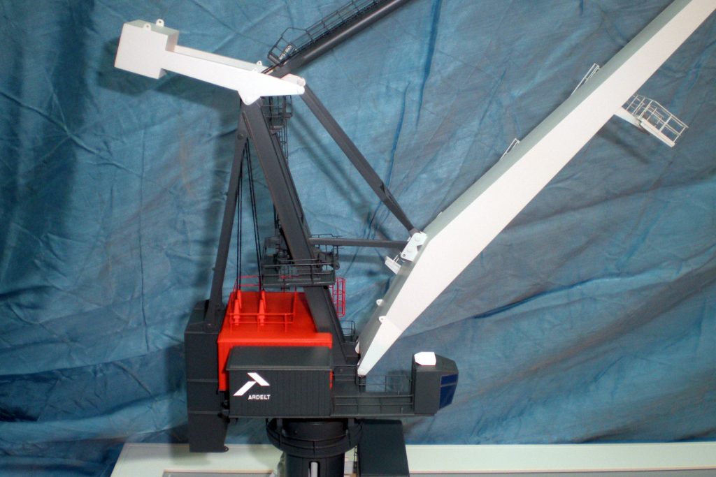 При выгрузке груза из судна бункер устанавливается горизонтально, а при перемещениях крана вдоль пирса — вертикально; при этом бункер не задевает надстроек судна[1].
