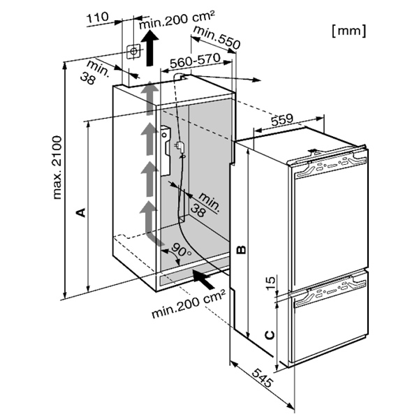 Схема встройки холодильников Liebherr ICN 3366 / ICN 3376 / ICN 3386 / ICNP 3366