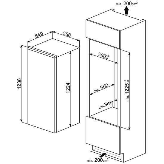 Схема встройки холодильников Liebherr ICS 3204 / ICS 3214 / ICS 3224 / ICS 3234 / ICS 3304 / ICS 3314 / ICS 3324 / ICS 3334