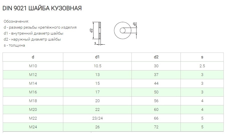 Немецкие стандарты DIN 125* и DIN 9021* для обозначения номинального размера шайб задают максимальные значения внутреннего диаметра шайбы: