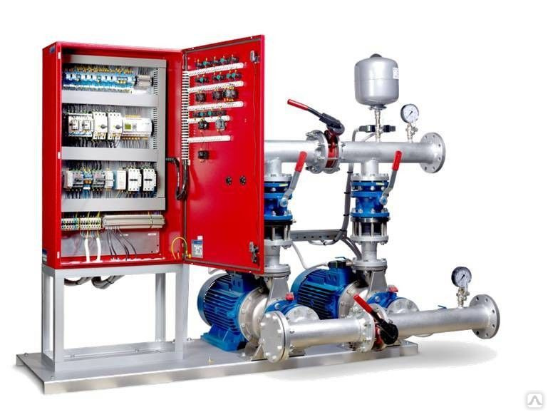 - Насосное оборудование (рабочие и резервные агрегаты). Насосы оснащены защитой от «сухого» хода, пропадания одной из фаз, повышения или понижения питающего напряжения.