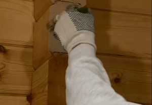 К внутренним работам предъявляют повышенные требования безопасности. Для обработки сруба изнутри применяют исключительно антисептики на водной основе. Они не имеют запаха, не выделяют токсичные вещества, пропускают воздух и обладают влагостойкостью. Если внутри помещения на стенах появились темные пятна, перед нанесением антисептика их следует обработать отбеливателем на основе активного кислорода.