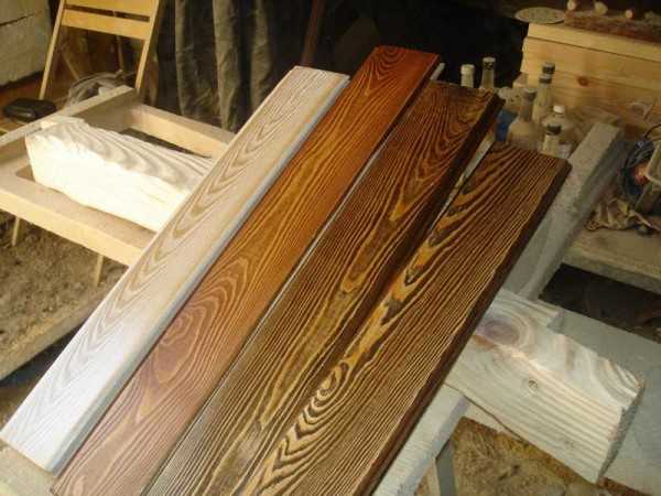 Вся хитрость — в нанесении двух слоев разного цвета. Первым слоем наносится какой-то темный цвет, вторым — светлый или более яркий. Поиграв цветами и порядком их нанесения можете создать свой вариант. Смотрите видео — как получить брашированную в два цвета вагонку.