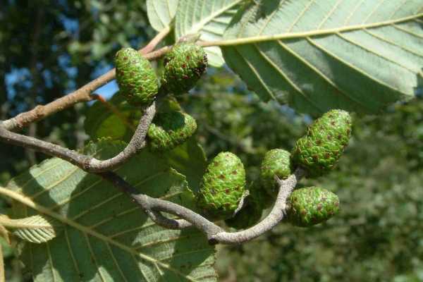 Ольха является низкорослым кустарным растением семейства Березовые, достигающим в высоту пяти и более метров. Растение обладает гладкой на ощупь, яйцевидной сероватой кроной. Листочки кустарника либо круглые, либо яйцевидные. Растение оснащено овальными и коротенькими цветками, собранными в соцветия — сережками. Плоды ольхи – шишки продолговатой формы. Семена – орешки.