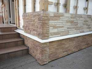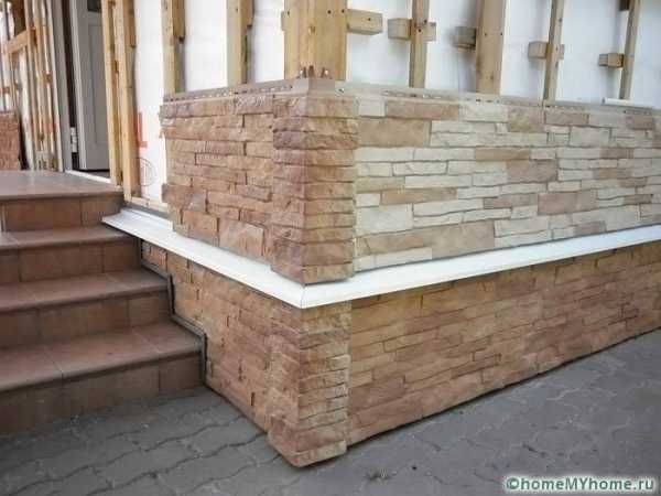 - Крепление конструкции необходимо проводить до начала облицовки стен, закончив перед этим облицовку цоколя. Стоит отметить, что перед началом работ нужно обязательно с помощью уровня выявить неровности в линиях цоколя и фундамента, которые необходимо выровнять при помощи раствора.