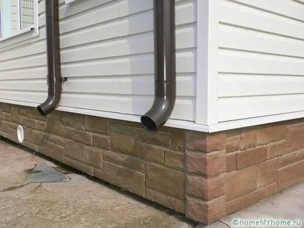 Полезный совет! Пластиковые отливы для цоколя фундамента отлично сочетаются с сайдингом из винила, образуя не только практичное, но и радующее взор сочетание.