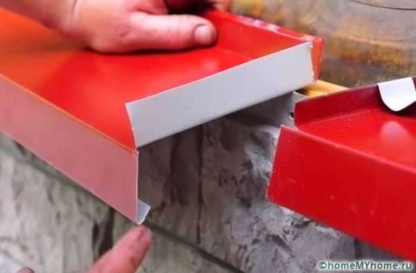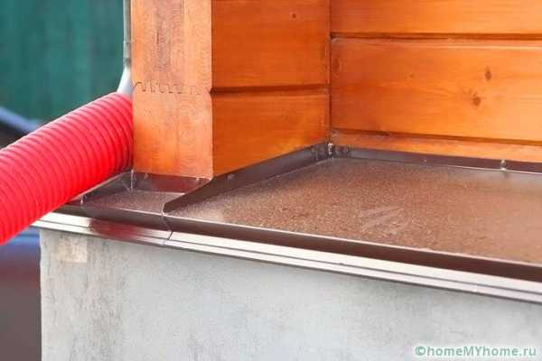 - Максимальная нагрузка действует на водоотливы в местах угловых стыков, поэтому эти части должны быть надежно зафиксированы и тщательно загерметизированы.
