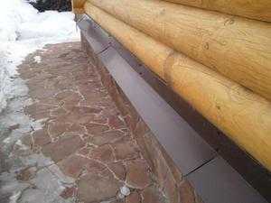 Обычно в домах деревянного типа ширина фундамента больше, чем стены, поэтому цоколь является выступающей конструкцией. Для того чтобы защитить поверхность цоколя от намокания и разрушения, сооружают специальные отливы. Работу можно выполнить из различного материала, из оцинкованной стали ламинированного вида или полимерных, то есть пластиковых элементов.