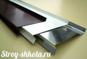 Для отливов из винила продаются специальные элементы углового вида, при использовании стали, их заказывают отдельно. Ширина отлива может достигать 400 миллиметров, система из листового материала может быть стандартной или изготовленной по индивидуальным размерам.
