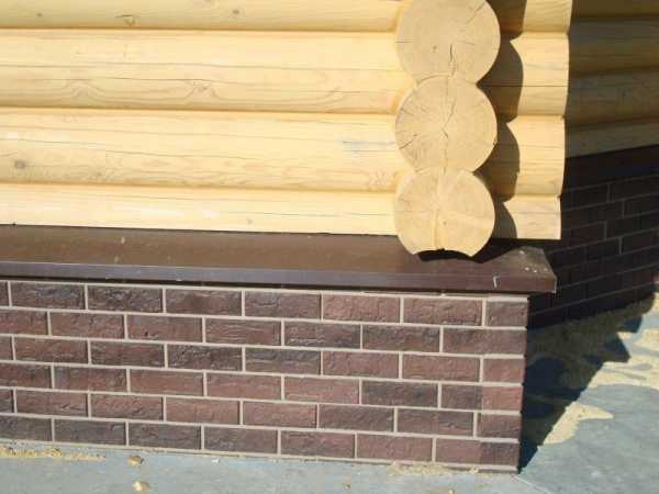 Если цоколь залит строго по горизонтали, а венцы стен соседнего вида смещаются на половину дерева в вертикальную сторону, то отливы располагают под определенным углом, можно также выбрать различный уровень.