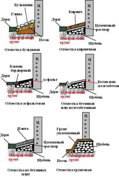Схема отведения воды от фундамента с устройством дренажной системы.