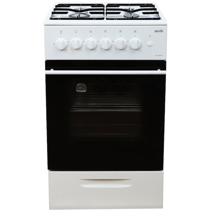 плита gefest gc 531e2wh начального ценового уровня, с шириной 50 см. Имеет 4 классические конфорки разного диаметра. Управление механическое. плита gefest gc 531e2wh имеет ящик для посуды, расположенный снизу. В конструкции не предусмотрено никаких дополнительных функций. Нагрев равномерный, но длительный по времени. Покрытие корпуса из эмали. В процессе эксплуатации прогорают конфорки по расположению тена. плита gefest gc 531e2wh не имеет автоматического выключения и отсутствует подсветка духовка. Поверхность сильно подвержена появлению ржавчины.