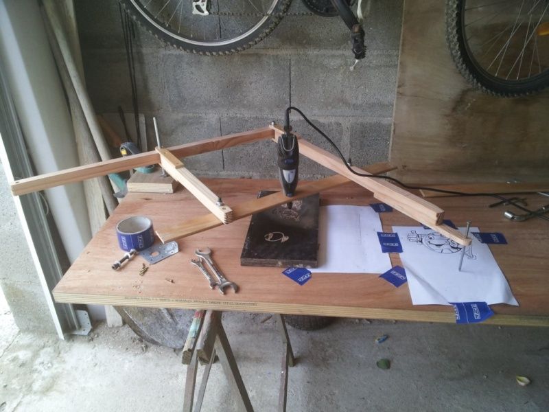Для начала я построил пантограф по чертежам мистера Ванделя. Единственное изменение, которое я сделал, вы можете увидеть на этом фото. По планам роутер держится в этом держателе с помощью какой-то деревяшки, которую предполагается прикрутить. Я хотел иметь возможность легко удалить маршрутизатор, чтобы использовать его в другом месте, либо в других инструментах, которые я могу построить для него, либо прикрепить к его базе, которая идет с ним. На самом деле это совсем не большое изменение. Я просто заменил два винта на два болта и ручки.