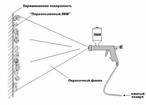 Маляр производил окраску с большого расстояния (чтобы захватить большую площадь окрашиваемой поверхности), рабочая вязкость при пневмораспылении находится в пределах 18 – 22 с; краска, вылетая из сопла в виде капель, в процессе преодоления этого расстояния теряет значительное количество растворителя (который банально испаряется) и долетает до поверхности уже не каплями жидкого ЛКМ, а почти высохшими сгустками, которые прилипают к поверхности, не растекаясь и не образуя сплошного однородного покрытия. Такой дефект лакокрасочники называют «переопылом». Именно эти засохшие и непрочно держащиеся на поверхности частицы краски и дают видимость «меления».