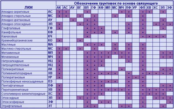 Таблица совместимости различных ЛКМ с основами и старыми покрытиями.
