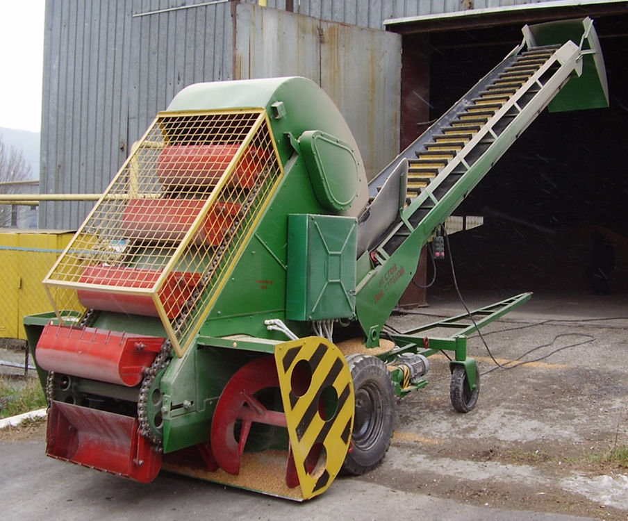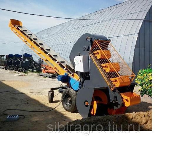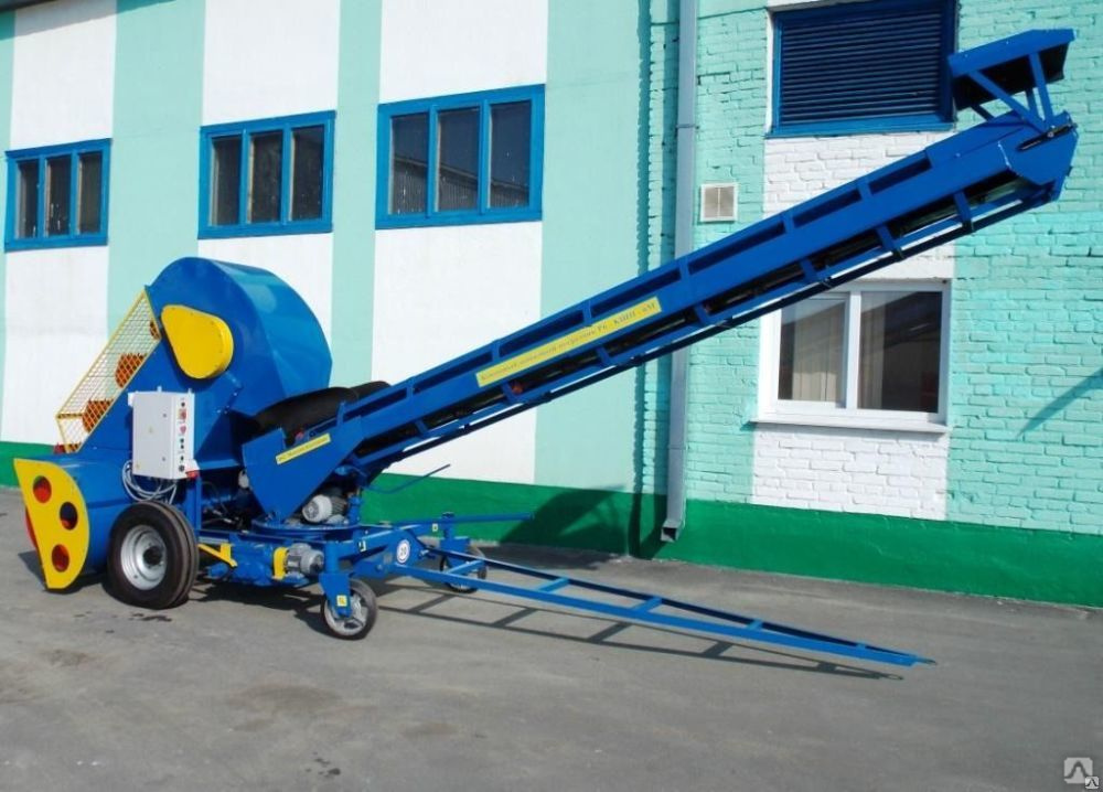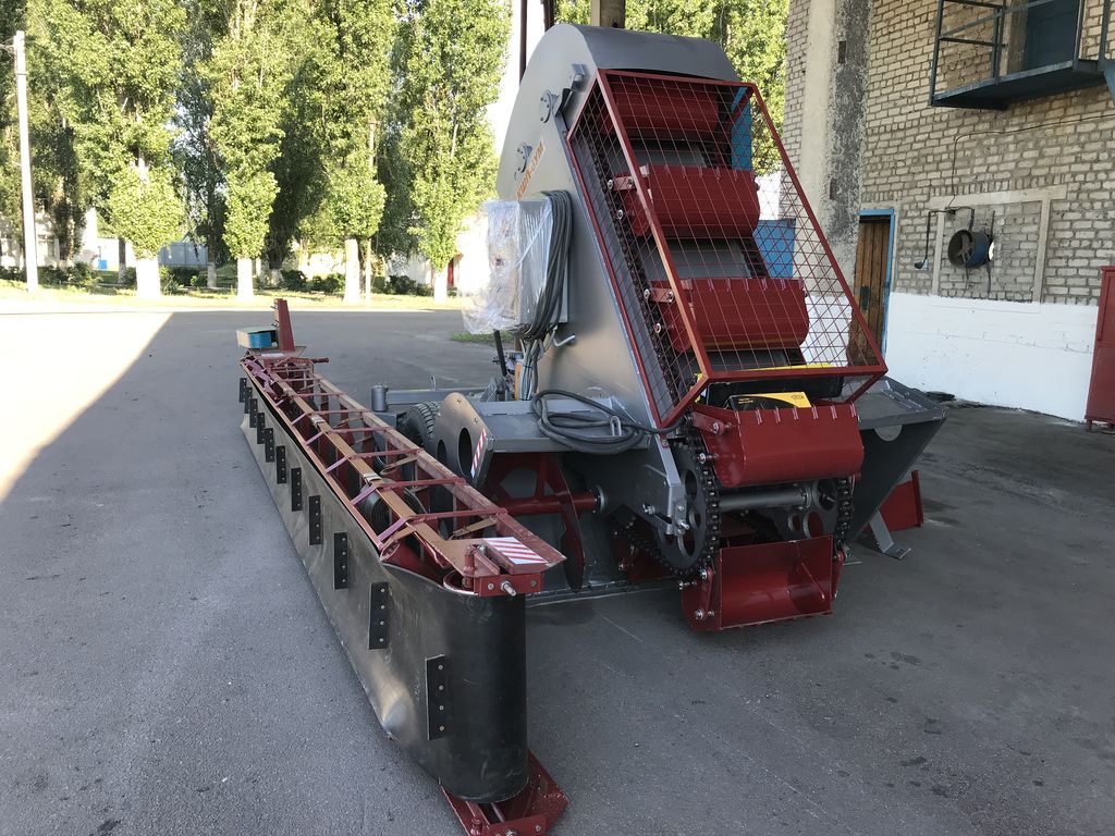 В качестве заборного устройства погрузчика используется элеватор, представляющий собой ковшовую цепь с 10-ю ковшами. Для обеспечения плавного и равномерного движения предусмотрены деревянные планки, поддерживающие рабочую ветвь ковша, по которым она скользит. Высокопрочный корпус электроцилиндров, которые обеспечивают подъем элеватора, рассчитан на длительную и интенсивную работу при любых температурных режимах.