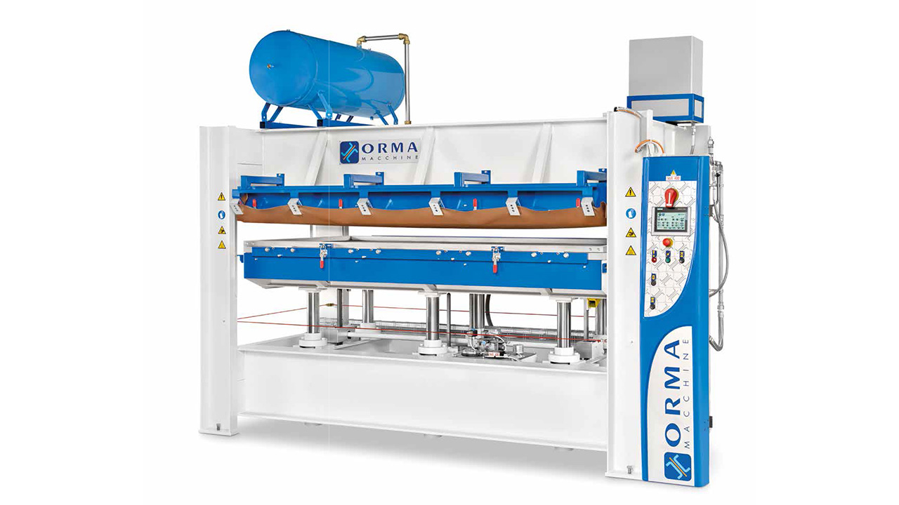 Универсальные гидравлические мембранные прессы типа OMNIA X5 ORMA предназначены для облицовывания пластей мебельных деталей ПВХ – декоративными пленками или шпоном.