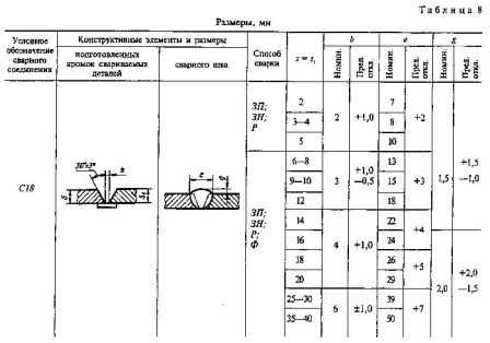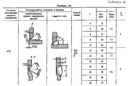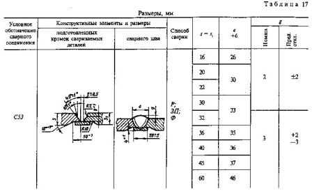 6. Сварка стыковых соединений деталей неодинаковой толщины при разнице, не превышающей значений, указанных в табл.34, должна производиться так же, как деталей одинаковой толщины; конструктивные элементы подготовленных кромок и размеры сварного шва следует выбирать по большей толщине.
